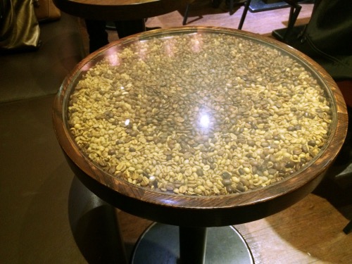 こんなコーヒーが敷き詰められているテーブルなんかもあっておしゃれなんですが…