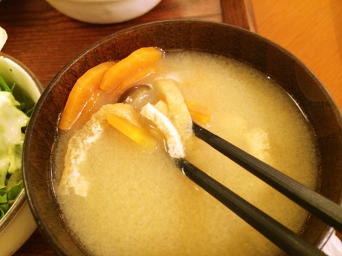 お味噌汁にも野菜がたっぷり入っています。