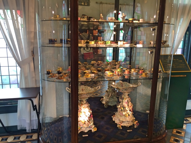 次に出迎えてくれるのは、数々のアンティークのチョコレートカップ。